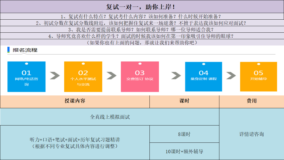 4、复试注意事项(食宿、礼仪、心态、知识准备等);